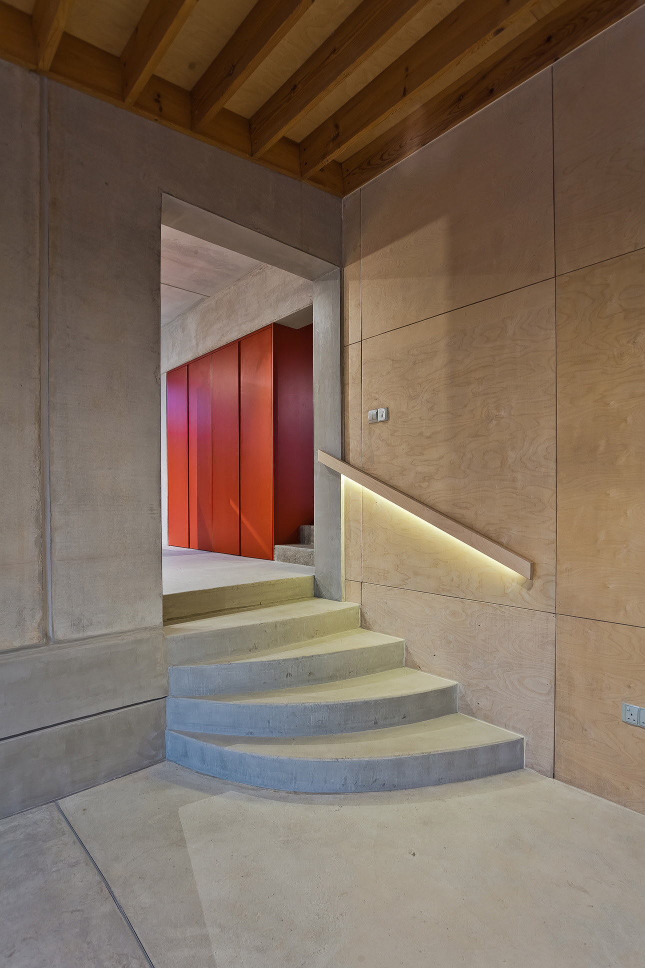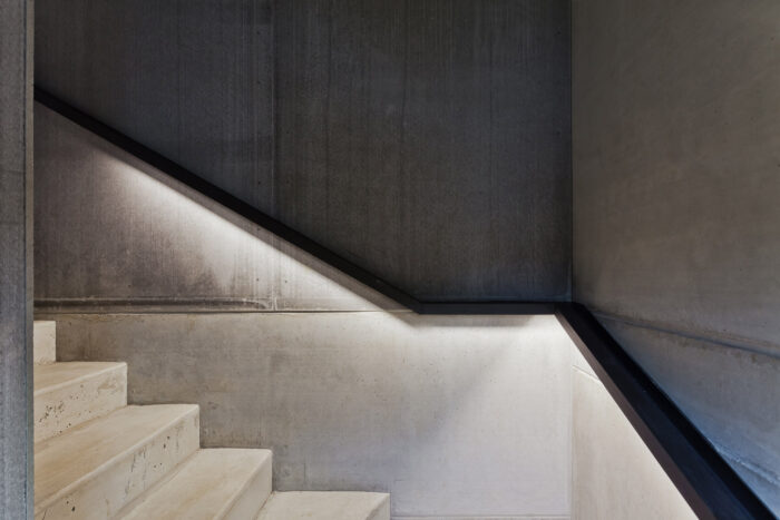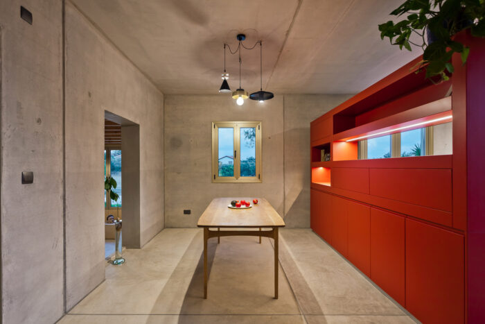 This modern minimalist home features a thoughtfully designed lighting scheme that enhances its sleek architecture. The blend of industrial-style pendant lights and ambient illumination creates a harmonious and inviting atmosphere, while bold accents add a touch of vibrancy. The overall design achieves a perfect balance between aesthetics and functionality.