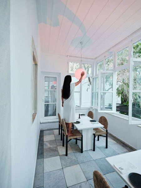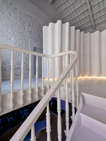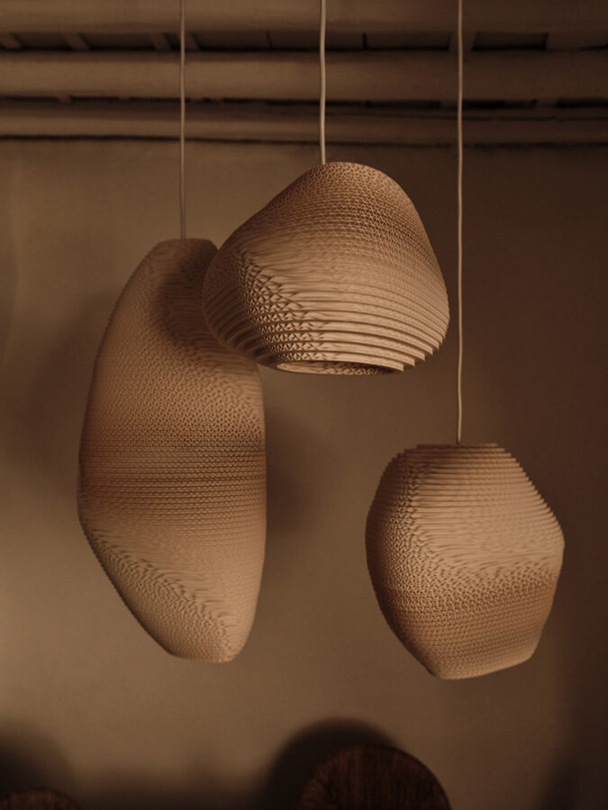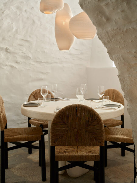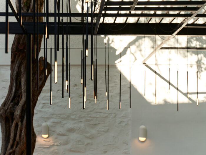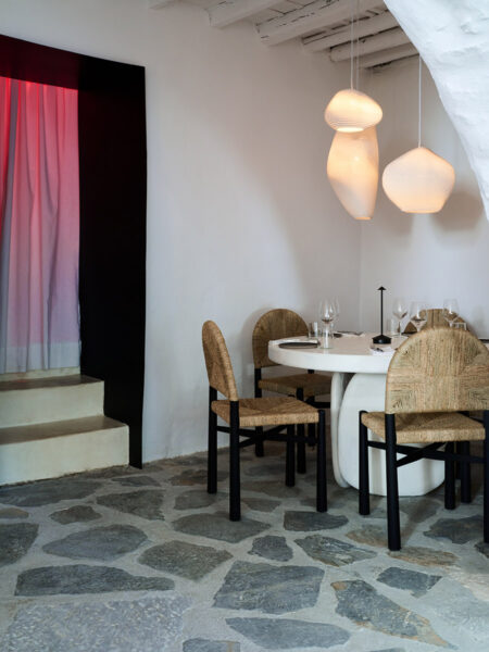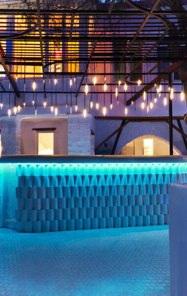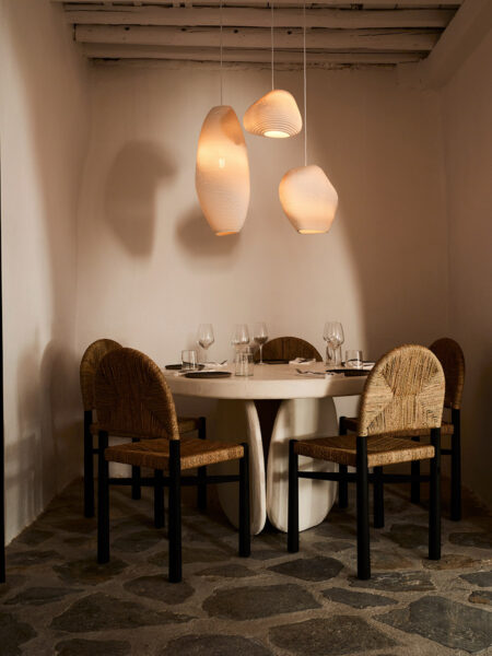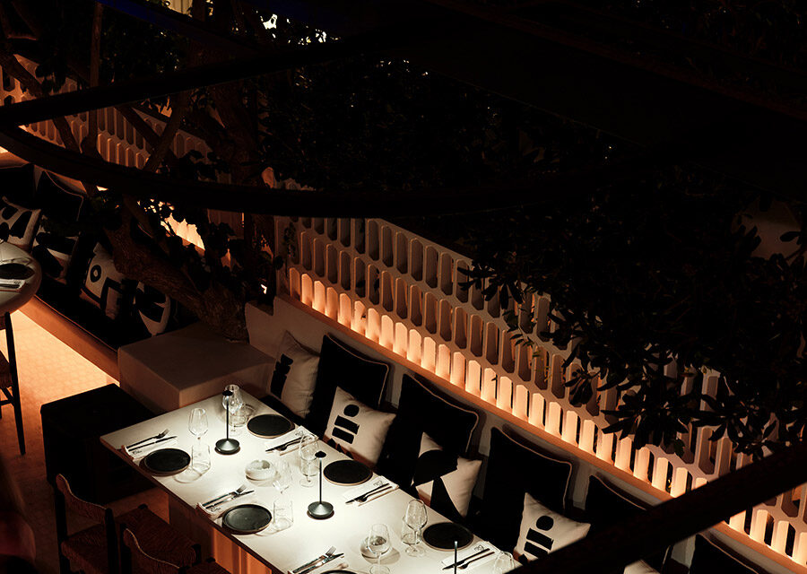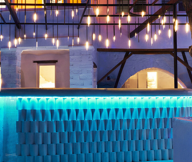 These images capture the lighting design for a restaurant, blending modern aesthetics with a warm, inviting atmosphere. The dining areas feature organic-shaped pendant lights that cast a gentle, ambient glow, enhancing the cozy and intimate setting. The interplay of light and shadows on the textured walls and stone floors adds depth and character to the space. Particularly notable is the area illuminated with an orange hue, where we aimed to recreate the serene and beautiful tones of a sunset, providing diners with a unique and memorable experience. The lighting design not only highlights the architectural features but also creates a harmonious balance between functionality and elegance.