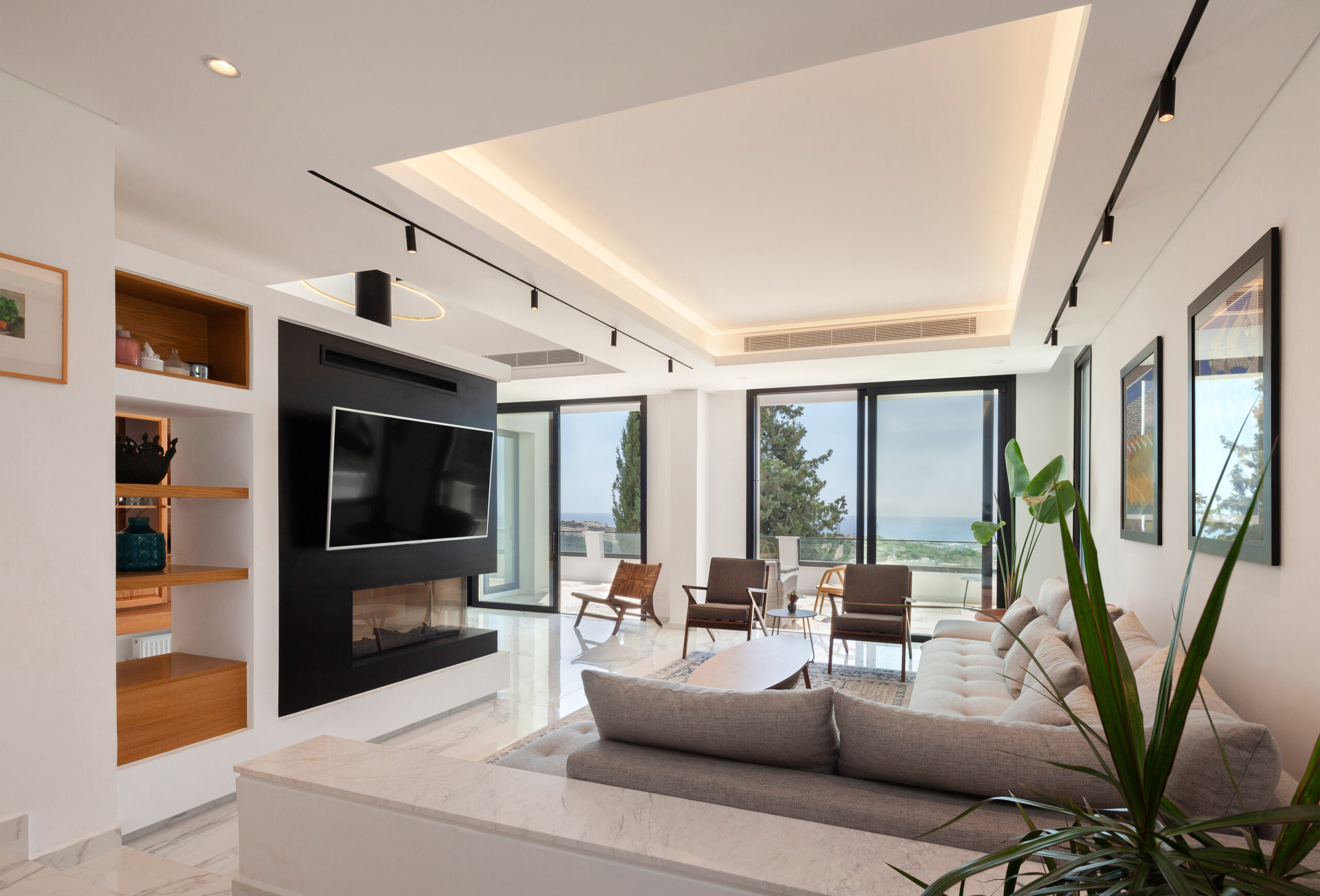 This project have a featuring a harmonious blend of recessed ceiling lights, sleek track lights, and stylish pendant fixtures, the design enhances the clean lines and open spaces of the interior. Strategic light placement highlights architectural details and art, creating a warm and inviting atmosphere perfect for relaxation and entertainment.